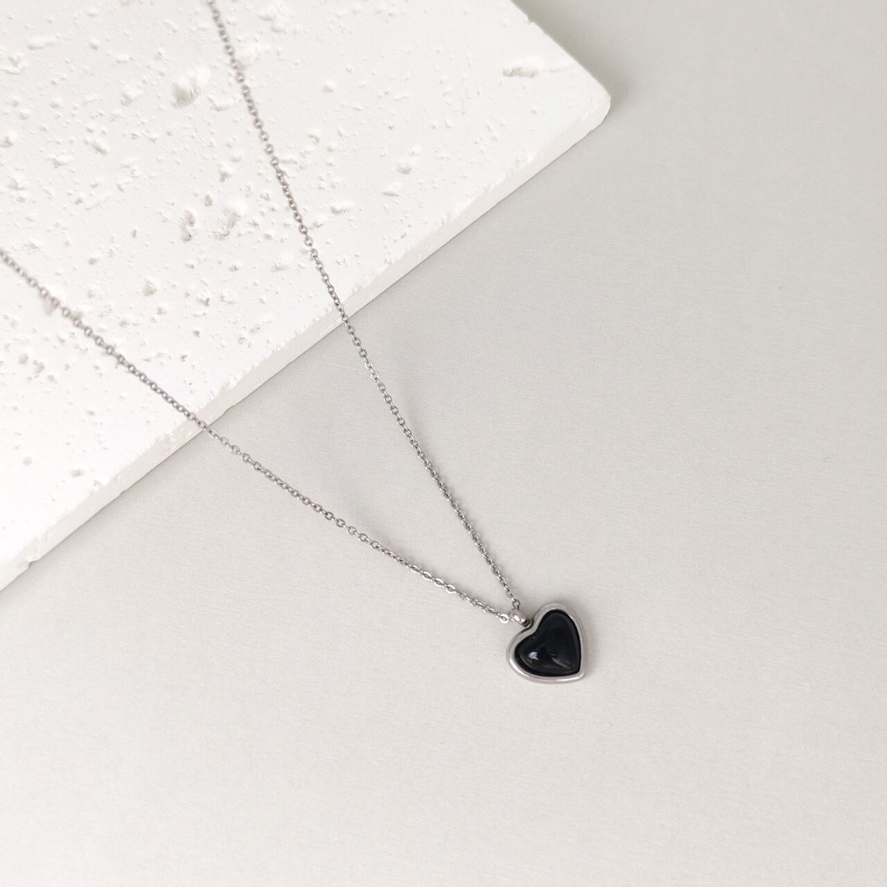 ハートブラックストーンネックレス(S) ゴールド