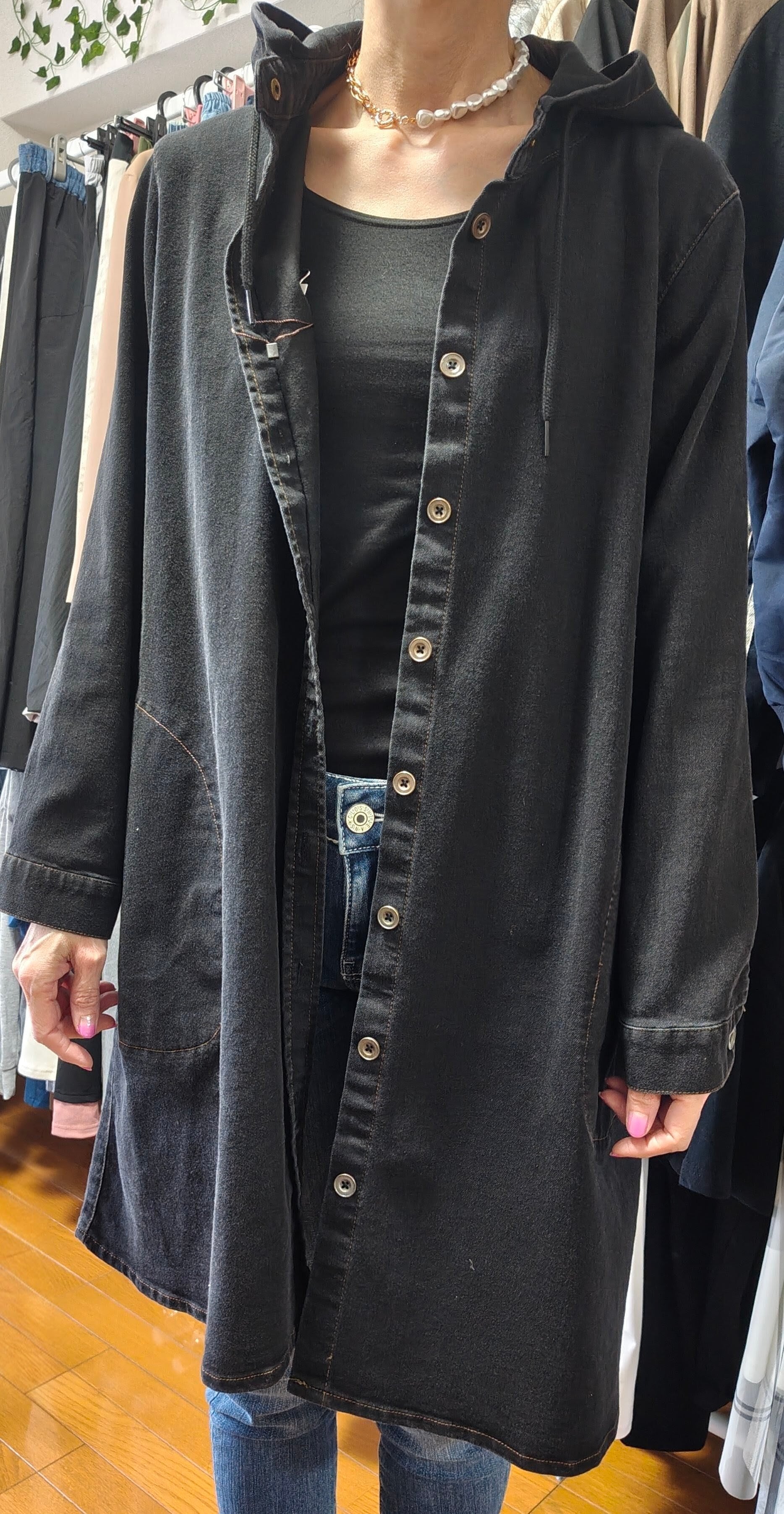 そら豆様専用 デニムロングジャケット ブラック