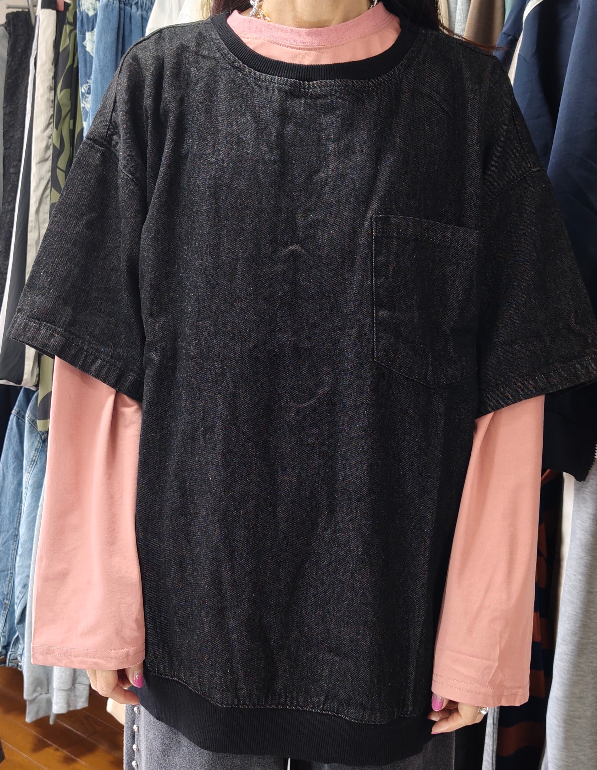 ツムツム様専用 デニムショートスリーブカットソー ブラック(0)